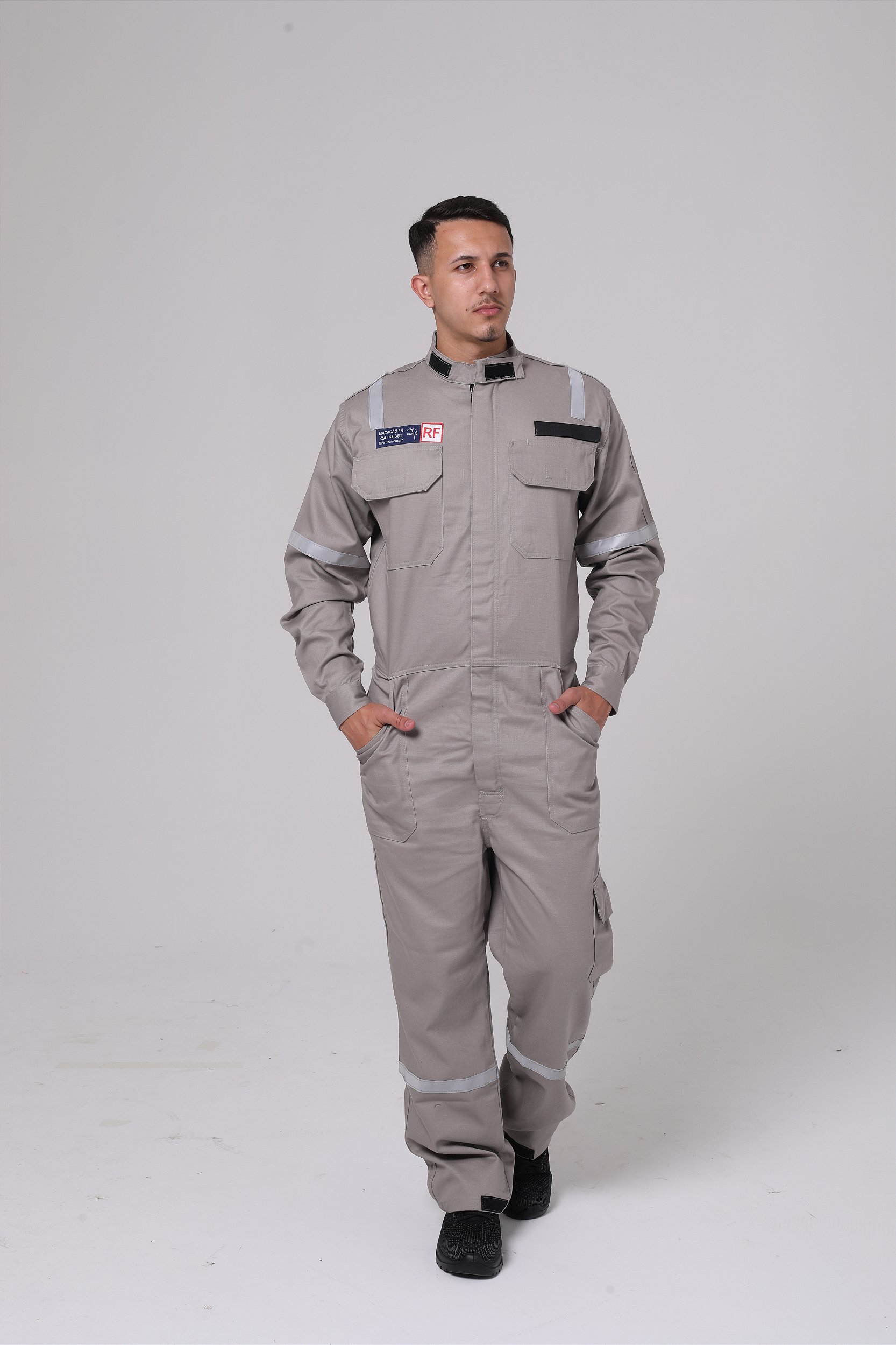 Macacão NR10 Eletricista Faixa Cinza Risco 2 - AntiChamas - Cinza
